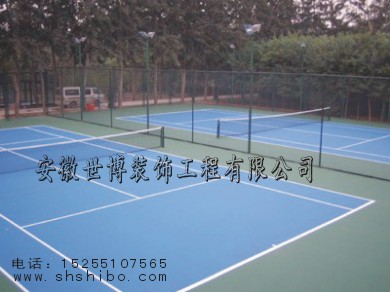 網球場,運動場公用地坪材料包適底漆、中層漆、各色面漆,它應用先輩技能分解出功能優良的丙烯酸水性材料,完整契合環保請求,具有較好的耐磨功能,防水、防曬、防滑、可鋪設于室表里瀝青或水泥面上。